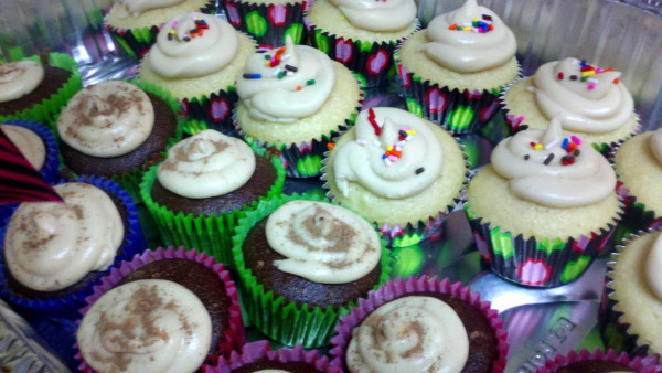 I have been on a baking frenzy! These lemon pound cake cupcakes are simply delicious. The secret ingredient? TOFU! Ha! Betcha didn’t know they contained something healthy. Well, too bad all the sugar counteracts the goodness of tofu, but the tofu replaces the egg in this recipe. Can’t even tell the difference – not even my coworkers, who are most likely scared of tofu, lol. I used the same vegan frosting recipe as I did on the Coconut Beach cupcakes, but without the blue food dye. Make these at your next house party, let everyone eat them, then tell ’em they’re vegan. Watch their faces. ;-) They’ll probably still be licking their lips!