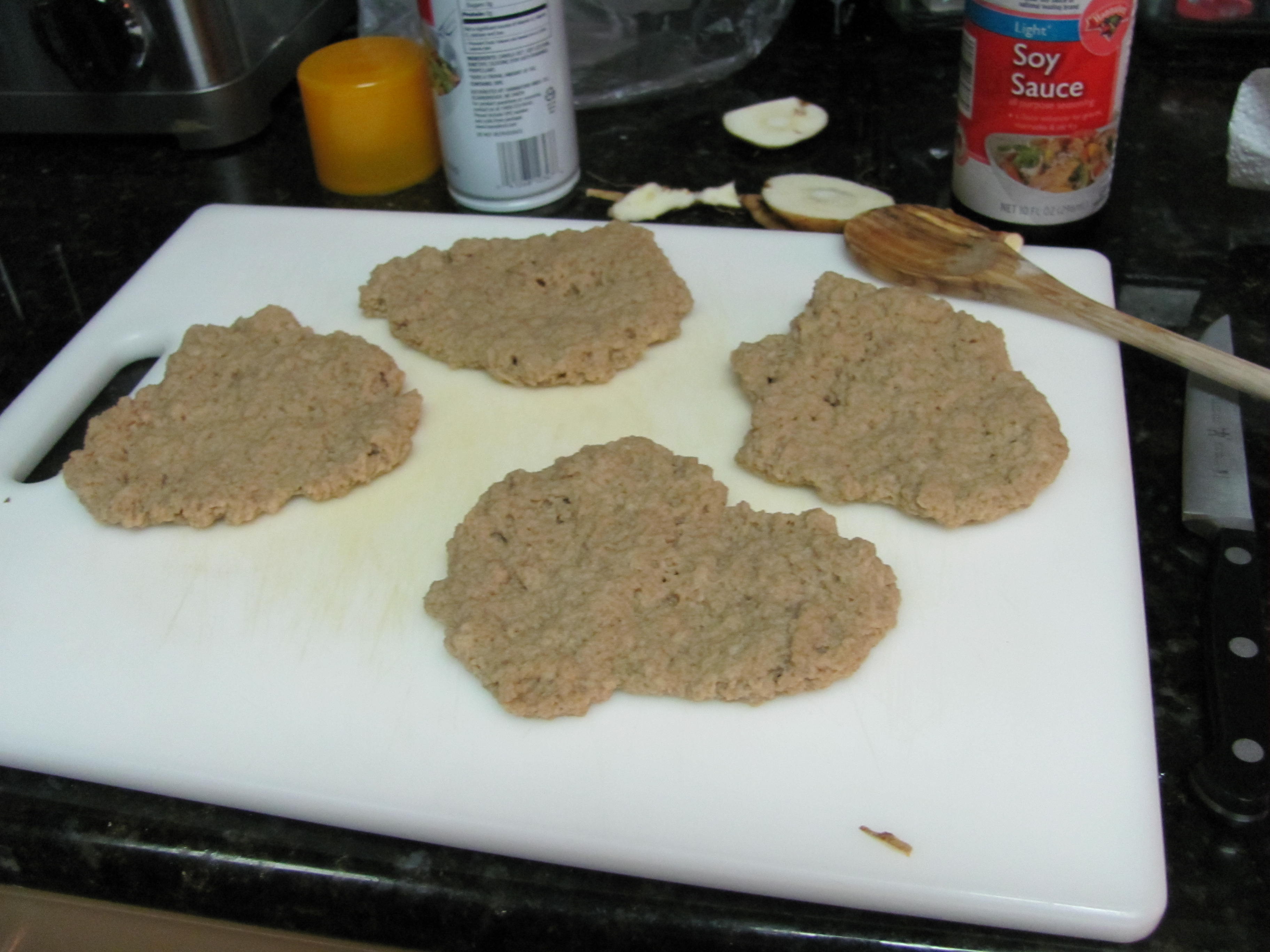 Seitan…what is that stuff? Wait, this looks like meat in the picture? Huh? Are you confused? I was AMAZED at how yummy this is! The texture is kinda different; it’s much like uncooked tofu, but the flavor was great. My husband ranked it pretty high on the scale! Making seitan is pretty…interesting, to say the least. What amazes me is that it’s basically just vital wheat gluten and water! I made it into patties, but since I had no clue what I was doing, I definitely would have made the patties smaller because it expands SO much when it boils. I had to add 1 cup of water like 3 times while it was boiling. It is kind of time consuming; it takes about an hour and a half to make the seitan (this includes sauteeing it in the sauce), but you can make large amounts of it and freeze it for later. I recommend making it into about 6 small patties, then as you sautee it once it’s boiled, cut it with the spatula into strips (as shown) while it’s cooking in the pan. This stuff would be great on top of a salad or on like a barbecue “chicken” pizza, or it’s just kind of good alone!