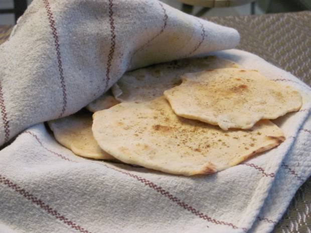I wanted some kind of Indian bread to accompany my Indian black lentil soup tonight, but naan would be too time consuming and uses yeast and egg. I wasn’t about to toast up a Mexican tortilla, so I decided this roti bread would be perfect since I had all ingredients on hand. I like rubbing a little cumin and coriander on them before I toast them in the skillet.