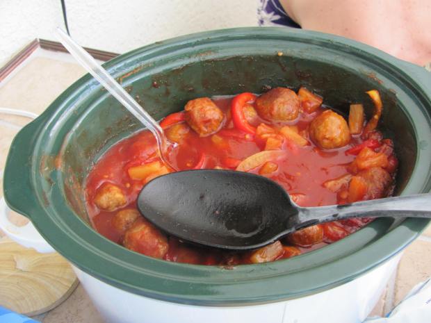 What’s better than fooling your friends into eating vegetarian food than making a pot full of meatless sausage balls, omitting the fact there’s no meat, watching them eat one after the other and listening to them asking for the recipe?… (Insert ticking clock sound effect)...I can’t think  of much that’s better than that! Well, other than wine. And chocolate. And designer purses.  These are relatively easy to make; they require a couple of steps and some preparation, but it’s not rocket surgery. LightLife makes a great sausage style veggie meat that tastes great, but is further enhanced by adding a blend of spices used for “real” sausage. Sage and fennel, anyone? Don’t mind if I do. This appetizer dish can be made as mild as you wish, or as spicy as you wish. Of course we opt for super hot and spicy. The sausage balls and sauce are actually just made on the stove top and placed in the crock pot to keep warm. However, letting the sausage balls bask in the sweet, sour and spicy glory for an hour or so makes them taste even better.