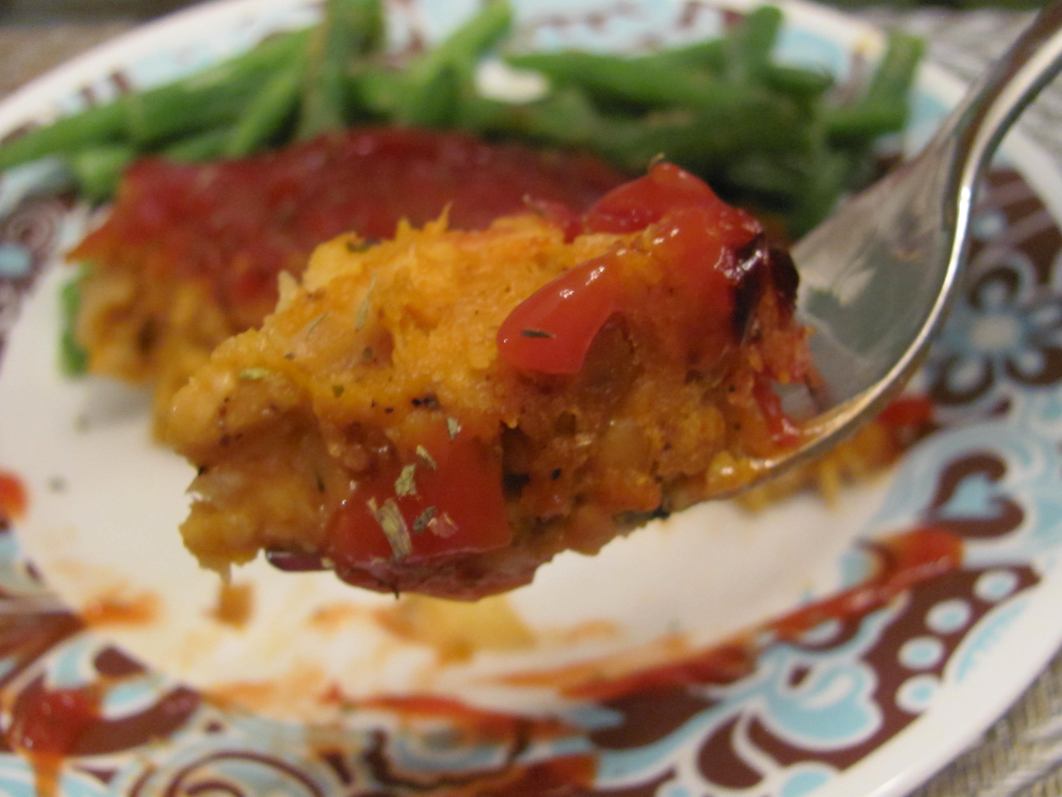 I will admit, I loved meatloaf growing up. My mom always put onions in it and I loved to smother it in ketchup. Not much has changed, except for, well, the meat part. This is just as easy to make as conventional meatloaf. Dump ingredients in bowl, mix, fill up a pan and bake.