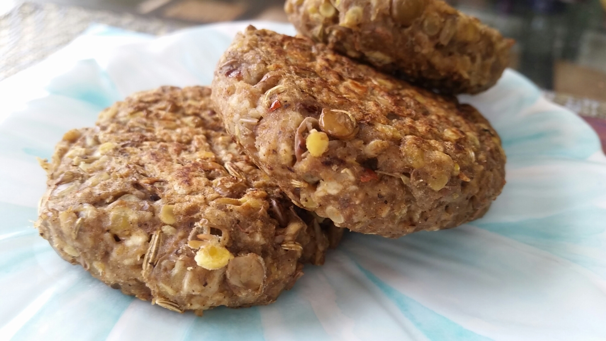 Heat a generous amount of olive oil in a nonstick skillet, or just heat it with nonstick spray to save on calories. Your lentil mix should be a very thick almost dough-like consistency. Shape it into balls that will fit in the palm of your hand. Gently place the balls on the hot pan and press with the spatula to flatten. Cook until crisp and browned.